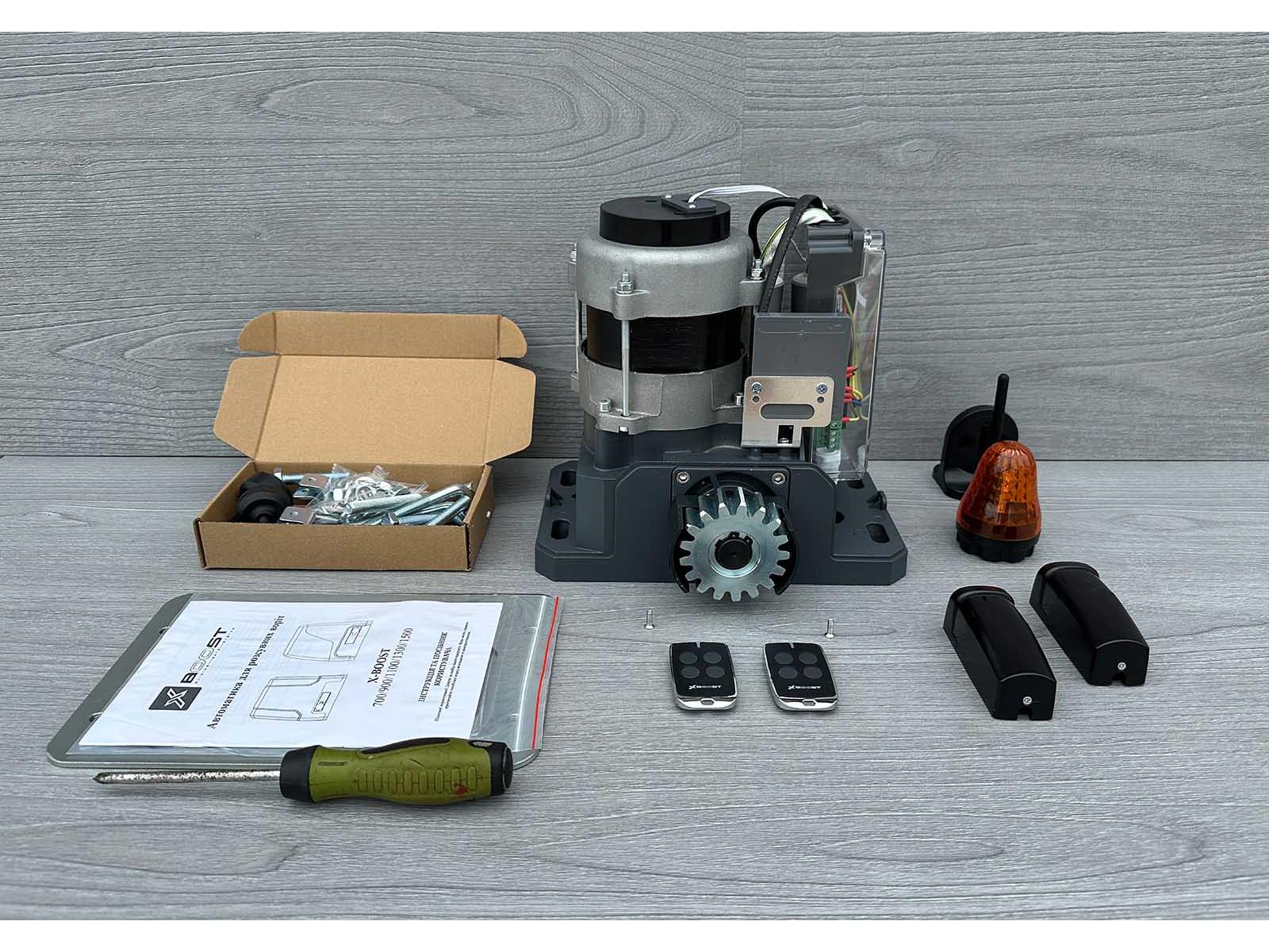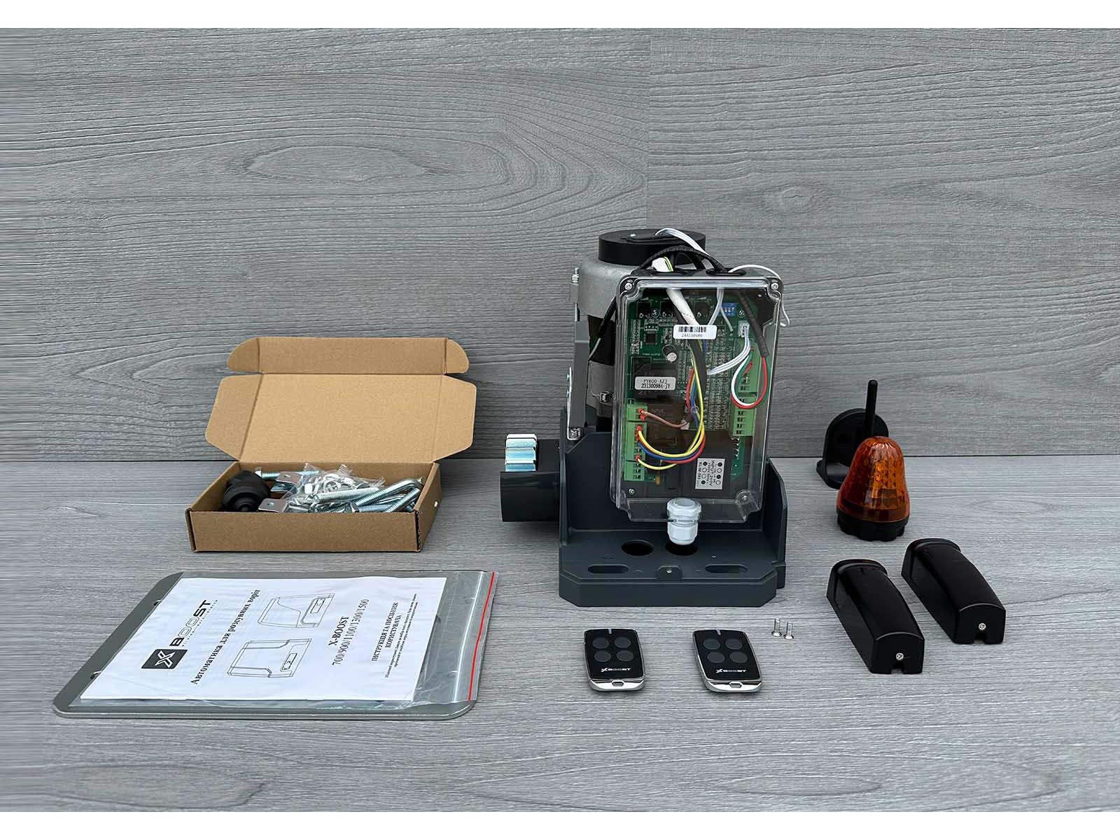 Комплект автоматики X-BOOST ES 1100 - це функціональне та доступне рішення для середніх воріт вагою до 1100 кг. Він підходить для воріт на об'єктах різного призначення за умови, що частота використання не перевищує 30 циклів на годину.