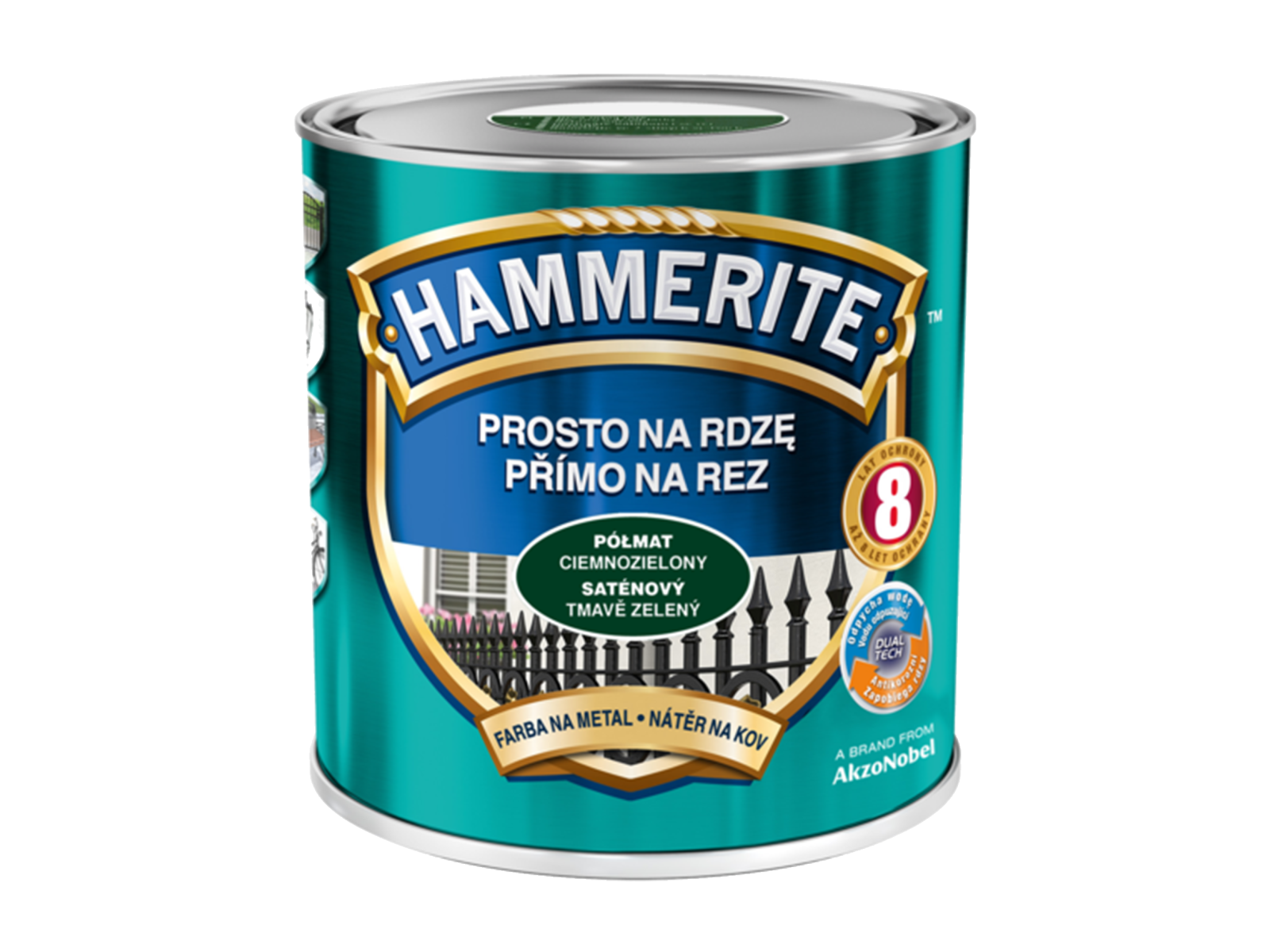 На відміну від звичайних фарб по металу, захисну фарбу по металу Hammerite можна наносити безпосередньо на іржавий метал без використання ґрунту та ґрунтувальної фарби. Захисна фарба по металу Hammerite забезпечує металевій поверхні привабливий зовнішній вигляд та тривалий захист від іржі.