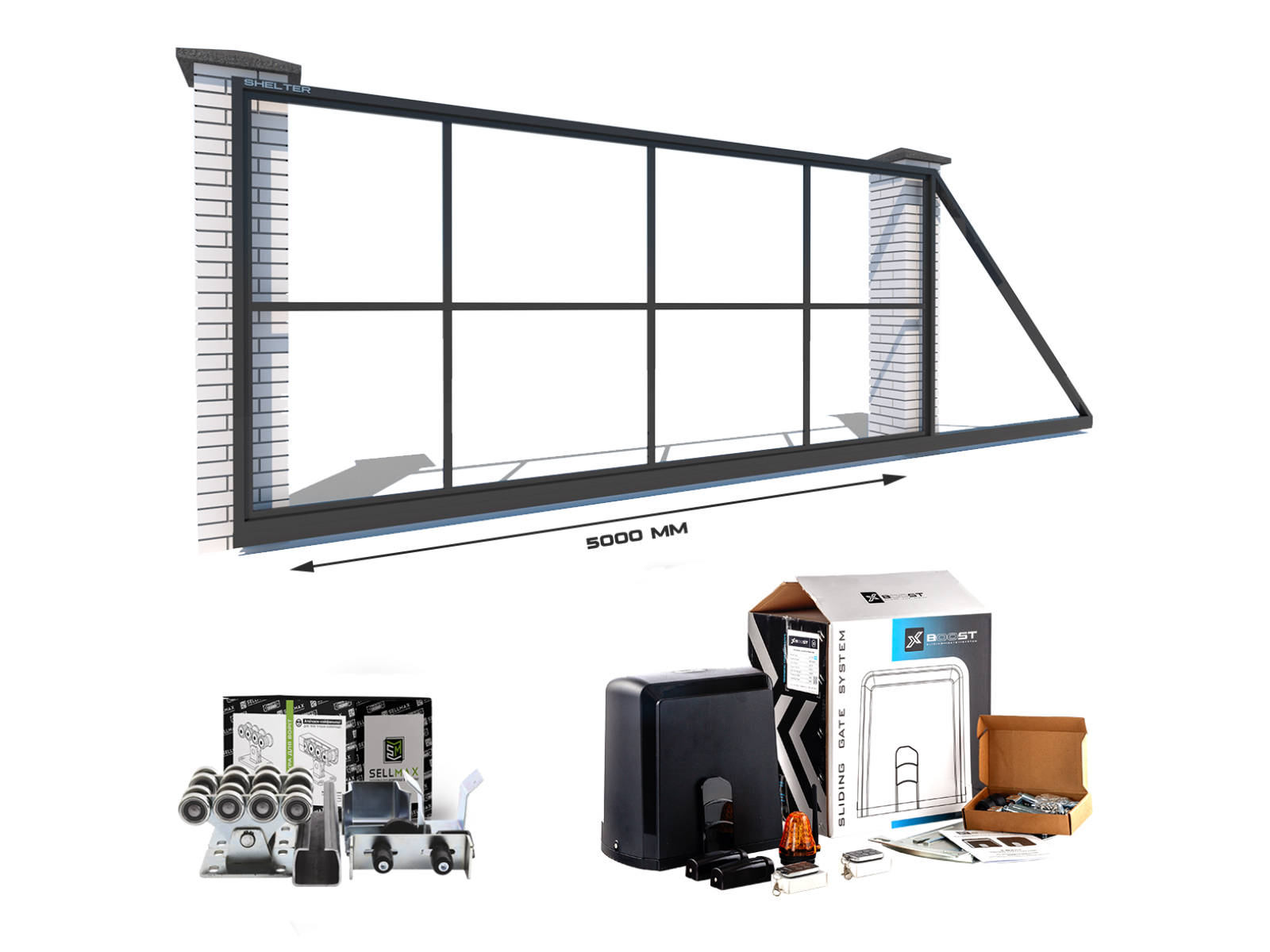 Каркас відкатних воріт з Т-профілю на проєм 5 метрів, довжина воріт 7 метрів, з автоматикою