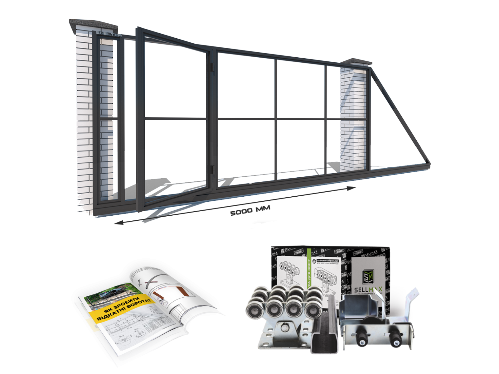 | Ширина проєма | Для ширини проєму | Ширина створки | Загальна довжина воріт |