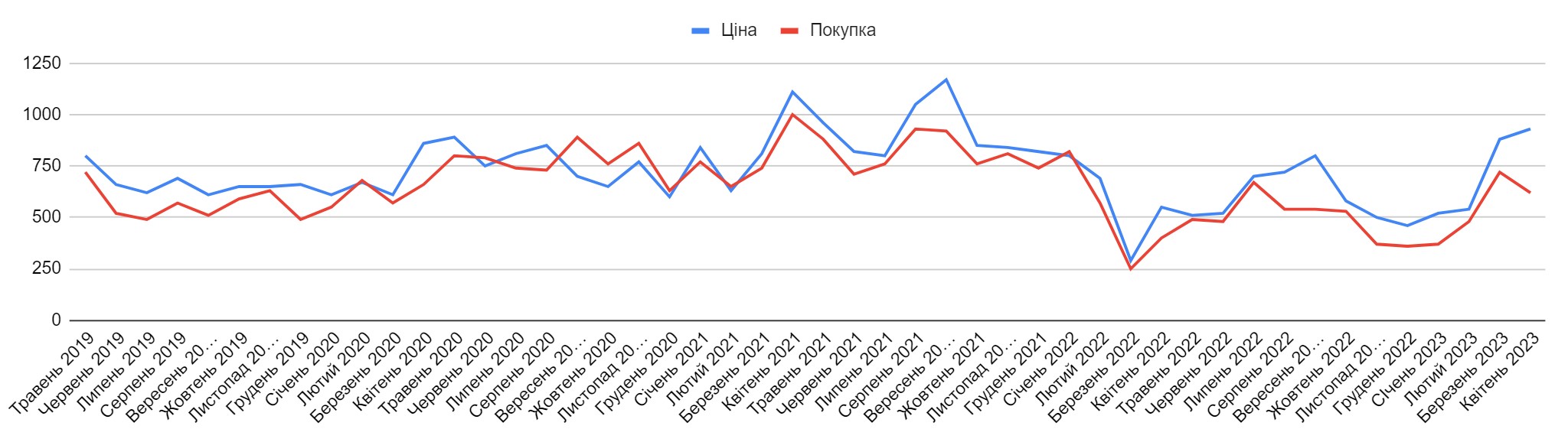 Рис.1. Динаміка онлайн-попиту на автоматику в Україні, травень 2019 - квітень 2023