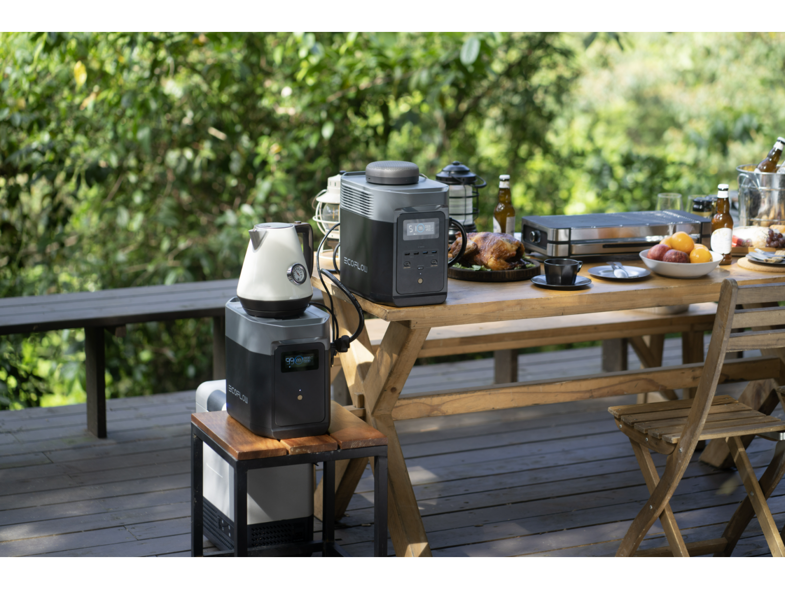 Smart Extra Battery заряджається та розряджається паралельно з DELTA 2, зберігаючи однаковий заряд у станції та додатковій батареї. Заряджайте Smart Extra Battery від сонячних панелей, розеток змінного струму або EcoFlow Smart Generator.