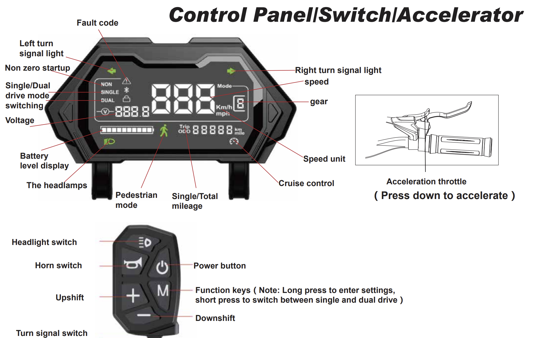 - ОпцииС большими колесами, С дисковыми тормозами, С дисплеем, С задним приводом, С надувными колесами, С поворотниками, С фарой, Складной