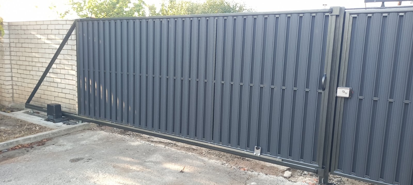 Откатные ворота с одной створкой открываются как двери купе - вправо или влево. Двустворчатые ворота разъезжаются в стороны. Чтобы не приходилось откатывать или раздвигать ворота вручную, обустройте их автоматикой. Автоматика - это двигатели, установленные непосредственно у основания ворот и при взаимодействии с зубчатой рейкой, открывают ворота. Это определенный набор электроники, который позволяет управлять воротами удаленно, например со смартфона или компьютера.