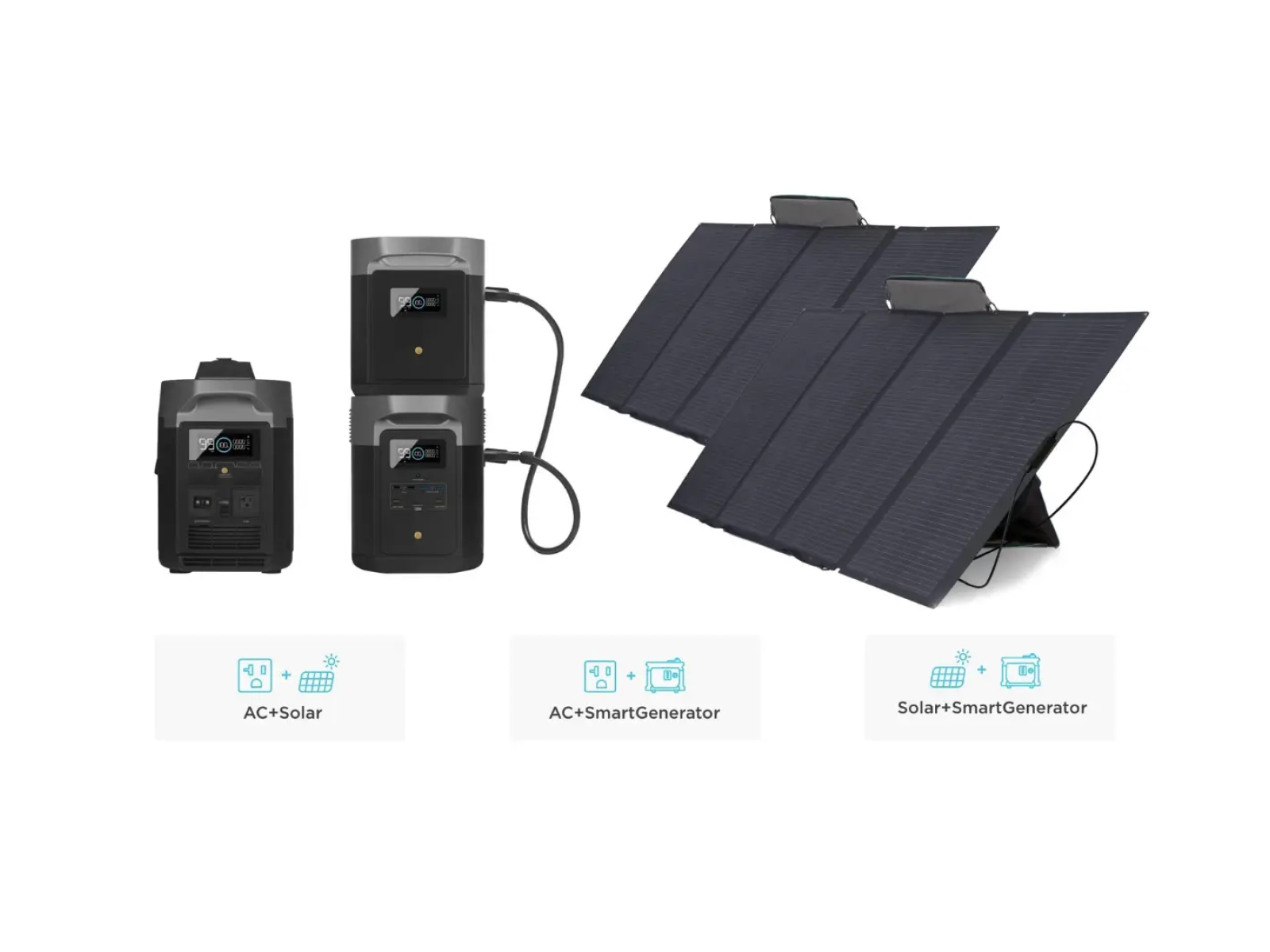 Портативный солнечный генератор: Используйте энергию солнца, заряжая станцию DELTA солнечной энергией. DELTA Max подключается к 2 солнечным панелям EcoFlow мощностью 400 Вт для обеспечения максимальной скорости солнечной зарядки 800 Вт.