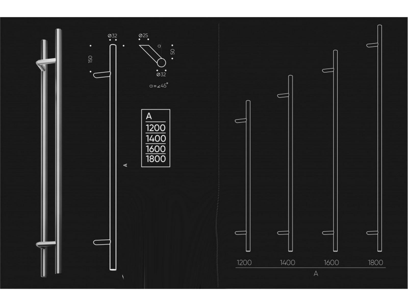 - Доступна у різних довжинах: 1200 мм, 1400 мм, 1600 мм, 1800 мм.