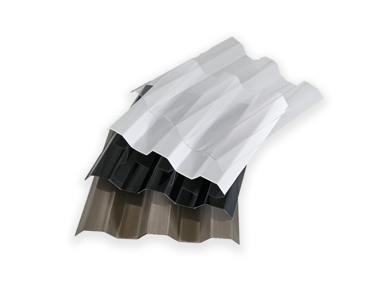 - Профільний (хвилястий) полікарбонат: Відрізняється від звичайного монолітного полікарбонату своєю хвилеподібною поверхнею, що дозволяє використовувати його для різних типів конструкцій, включаючи покрівлі, козирки, навіси та огородження.